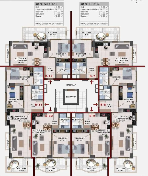 Discover modern seafront apartments in the vibrant neighborhood of Okurcalar, Alanya. Surrounded by luxury hotels and social amenities, this complex offers a unique living experience. Located just a short distance from hospitals, supermarkets, and recreational spots, these flats provide convenience and comfort for residents. Enjoy a range of luxury amenities including a communal garden, swimming pool, sauna, and more. Don’t miss the opportunity to own a piece of paradise in Alanya. Contact us today for more information!![]()