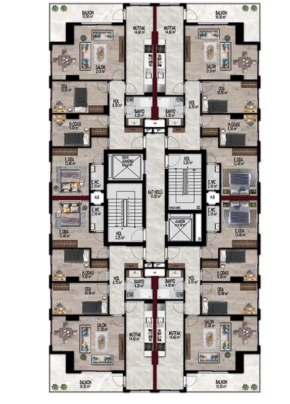 Discover these brand new family apartments situated in a quiet and elite area of Bayraklı, İzmir. Perfectly located near the main street, this neighborhood is the hub of business life with numerous cultural and social amenities. Benefit from the region’s urban transformation projects that enhance its value each day, offering wide streets, top-notch shopping spots, and proximity to prestigious office and skyscraper buildings. These spacious apartments boast 3 bedrooms, an en-suite bathroom, and a cozy living room with a balcony. Enjoy the convenience of being a short walk away from hospitals, schools, universities, and the metro. Don’t miss out on this opportunity to own a modern home in this highly sought-after location.![]()