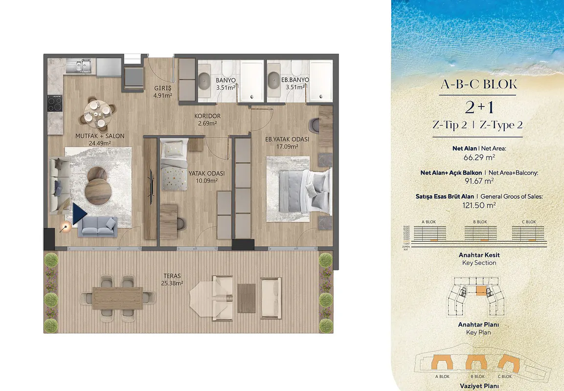 Discover modern sea view apartments for sale in Büyükçekmece, İstanbul, offering a perfect blend of luxury and comfort. Situated just 500 meters from the E-5 highway, these apartments provide convenient access to key locations such as the beach, Buyukcekmece Lake, Perla Vista Shopping Mall, and the international fair and congress center. The complex features fantastic amenities including an outdoor swimming pool, Turkish bath, sauna, and children’s playground. With options for open or separate kitchen layouts and en-suite bathrooms, these apartments cater to diverse preferences. Don’t miss the opportunity to own a piece of paradise in Büyükçekmece. Contact us today for more details.![]()