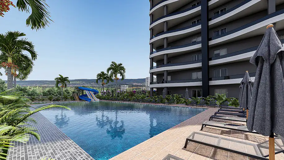 The complex in Erdemli features an array of upscale facilities, including a swimming pool, Turkish bath, playground, and landscaped gardens. Whether unwinding by the poolside or enjoying a barbecue with friends, residents can experience a high standard of living in a secure and vibrant community.