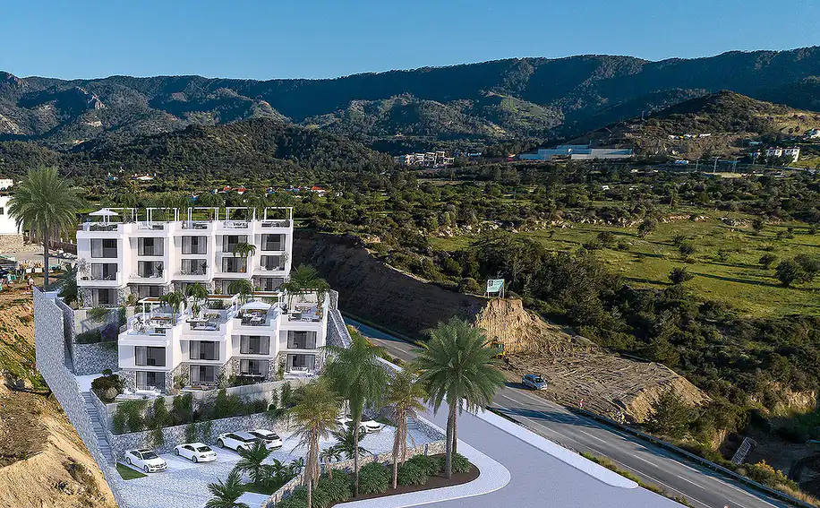 Discover these modern apartments in Bahçeli Girne, North Cyprus, offering breathtaking sea views and a convenient location near the beach. As one of the top 5 safest countries to reside in, North Cyprus boasts rapid development and a thriving real estate market. The vibrant neighborhood of Esentepe – Bahçeli is a sought-after holiday destination and investment hub with its historical landmarks, recreational spots, and panoramic sea and mountain vistas. Girne, known for its alluring beaches, rich history, and excellent healthcare facilities, attracts visitors year-round. Don’t miss the opportunity to invest in a property that promises not only a high quality of life but also potential value appreciation. Contact us today to book a viewing and secure your own piece of paradise in North Cyprus.![]()