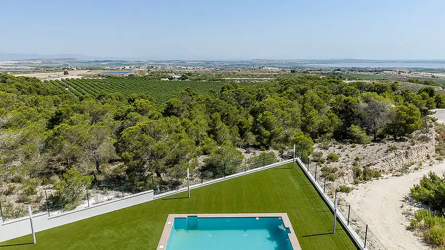 Discover these exquisite detached villas in San Miguel de Salinas, Costa Blanca, offering breathtaking panoramic sea views. Nestled in a peaceful setting, this charming town provides the perfect escape from the hustle and bustle of city life. Enjoy the ultimate privacy and tranquility while being just a short distance away from essential amenities such as supermarkets, restaurants, and schools. Immerse yourself in luxury living with your own private swimming pool and beautifully landscaped garden, creating an oasis of relaxation. Inside, experience modern comforts like air conditioning, Jacuzzi, and high-end kitchen appliances, perfect for a comfortable lifestyle. Don’t miss the chance to own a piece of paradise in Alicante. Contact us today for more information. ALC-00153![]()