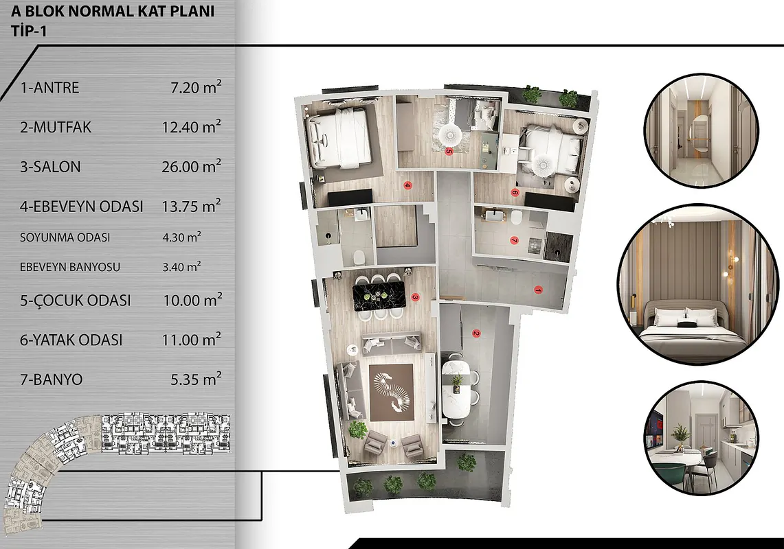 Discover the epitome of luxury living in the vibrant Çankaya Neighborhood of Kepez. Nestled on Çankaya Masadağı, these apartments offer breathtaking views of Antalya’s skyline, providing a daily dose of serenity and beauty. Situated just a stone’s throw away from Antalya City Hospital, the project is surrounded by a hub of activity and development, promising a dynamic lifestyle experience. With a generous plot area of 7,500 m², the project comprises 196 apartments across 2 blocks and 7 villas, boasting exquisite architecture and spacious interiors. Residents can choose from a variety of apartment layouts, including penthouse duplexes with private pools for a touch of exclusivity. On-site amenities cater to every need, from parking and security to fitness areas, swimming pools, and sports courts, ensuring a well-rounded living environment. These apartments are equipped with modern conveniences such as a built-in appliance system, underfloor heating, and a smart home setup, guaranteeing comfort and convenience at every turn. Don’t miss the chance to elevate your lifestyle in these exceptional apartments. Enquire now for more details.![]()