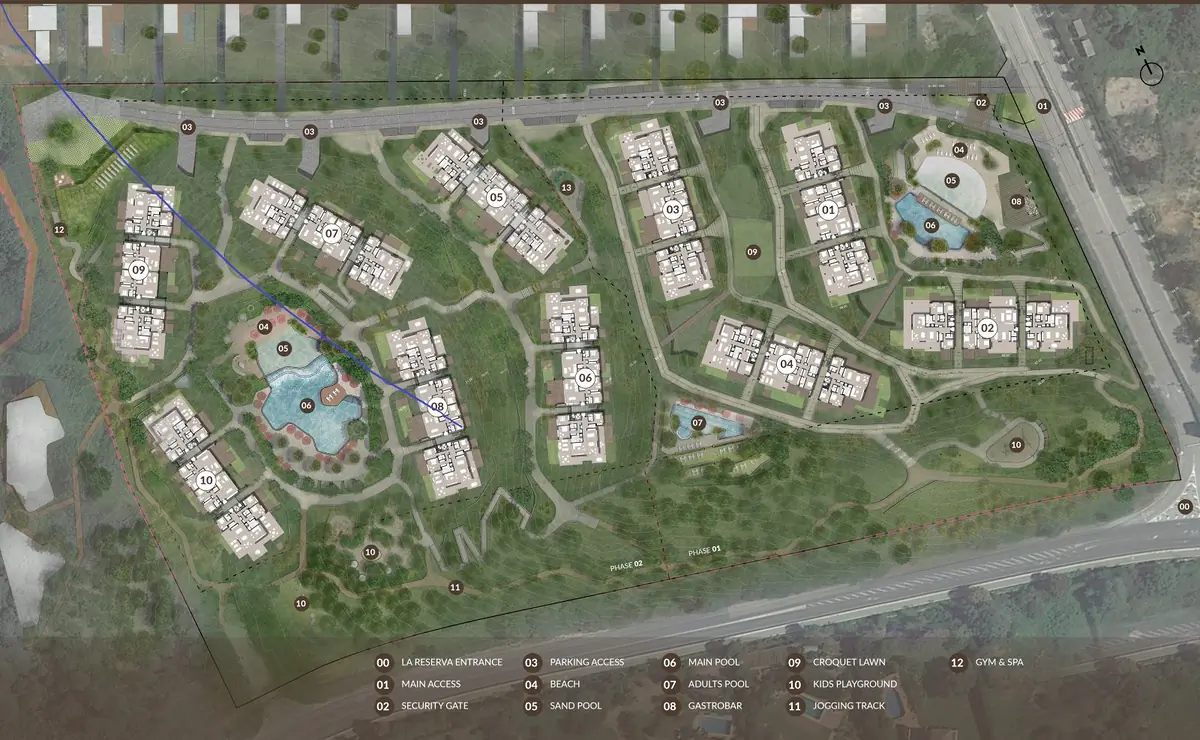 The project offers various flat types with various numbers of bedrooms along with amenities such as golf and tennis courses, restaurants, health services, walking trails, bicycle routes, and areas for water sports.