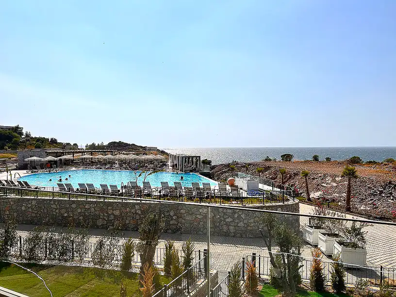 Nestled within a prestigious 72.000 sqm development featuring 194 villas, this property is a true gem. Residents can enjoy a private marina, beach access, on-site dining options, concierge services, a cinema under the stars, spa facilities, and much more. With 3 bedrooms, a spacious living area, and mesmerizing sea views from the balconies, this villa is the perfect retreat for those seeking a refined lifestyle.