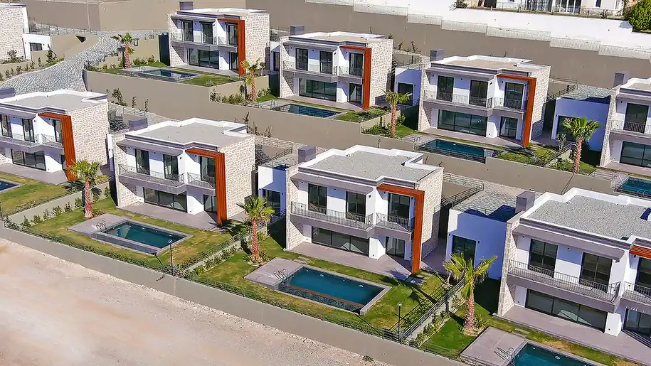 Discover the epitome of luxury living with these stunning beachfront villas in Akyarlar, Turgutreis. Nestled in one of Bodrum’s most prestigious holiday destinations, these detached villas offer unrivaled views of the Greek Islands and easy access to natural sandy beaches. Within walking distance, you’ll find a plethora of amenities including markets, cafes, and restaurants, making everyday life a breeze. Embrace a resort-style living with beach clubs and hotels at your doorstep. These exclusive villas boast private gardens, picturesque sunset views, and refreshing swimming pools, providing the perfect oasis for relaxation and entertainment. The meticulous design of the properties ensures a seamless blend of elegance and functionality, ideal for both seasonal getaways and permanent residence. With three bedrooms and a fully equipped guest house, these villas redefine contemporary living standards. Don’t miss the chance to own a piece of paradise in Bodrum. Contact us today for more information.![]()