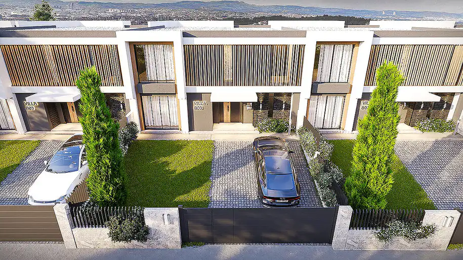 Discover a selection of luxurious villas nestled within a spacious project in the serene Üçevler region of Bursa. Enjoy the tranquility of clear air, lush forests, and captivating city views right from your doorstep. Located conveniently close to the city center, these villas offer the perfect blend of nature and urban living. Unwind in the comfort of your new home, just 3 km from popular shopping centers. With 5 bedrooms, underfloor heating, smart home systems, and high-quality finishes, these villas redefine modern living. Take advantage of the on-site amenities including a swimming pool, children’s playground, walking trails, gym, and 24/7 security. Don’t miss out on the opportunity to own a piece of luxury in Bursa. Contact us today for more information and to schedule a viewing.![]()