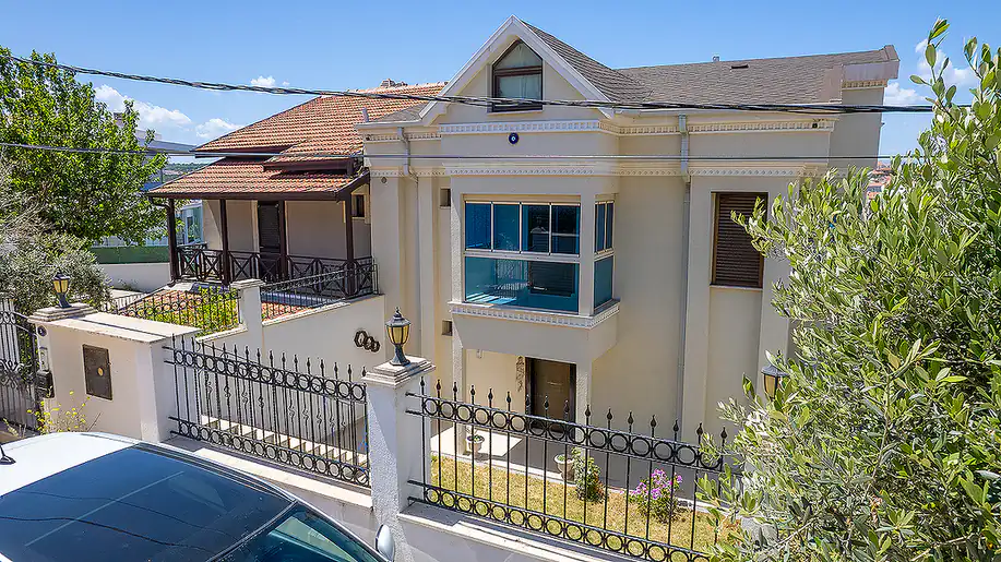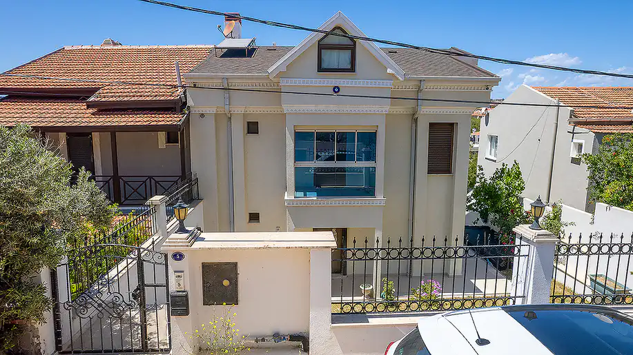 Discover this charming detached villa in İzmir’s prestigious Çeşme Dalyan area, boasting breathtaking sea views and a serene garden. Nestled in a prime location near renowned restaurants and supermarkets, this property offers easy access to Sara Beach, Kocakarı Beach, and other popular spots. With a modern design spread over multiple floors, including a separate apartment on the first level, this villa is perfect for both personal use and rental investment. Benefit from top-notch amenities like steel doors, ceramic flooring, and a motion sensor security system. Don’t miss this opportunity to own your dream villa in Çeşme Dalyan.![]()