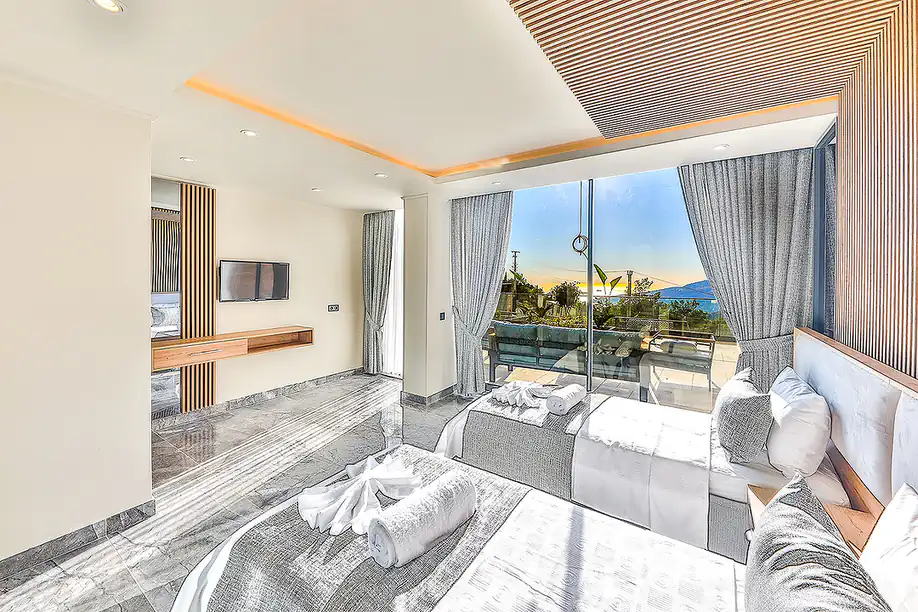 Discover the epitome of luxury living in Kaş, Kalkan with these stunning villas boasting panoramic views of the turquoise Kalkan Bay and lush pine forests. Situated just 4 km from Kalkan Center, residents enjoy easy access to amenities such as cafes, restaurants, and markets. The villas, located 6 km from the beach, feature indoor and outdoor pools on a 2.500 m² plot, perfect for soaking up the Mediterranean sun. With underfloor heating, central A/C, and fireplaces, these villas offer year-round comfort. Don’t miss the chance to own a piece of paradise with great rental income potential. Contact us today for more information.![]()