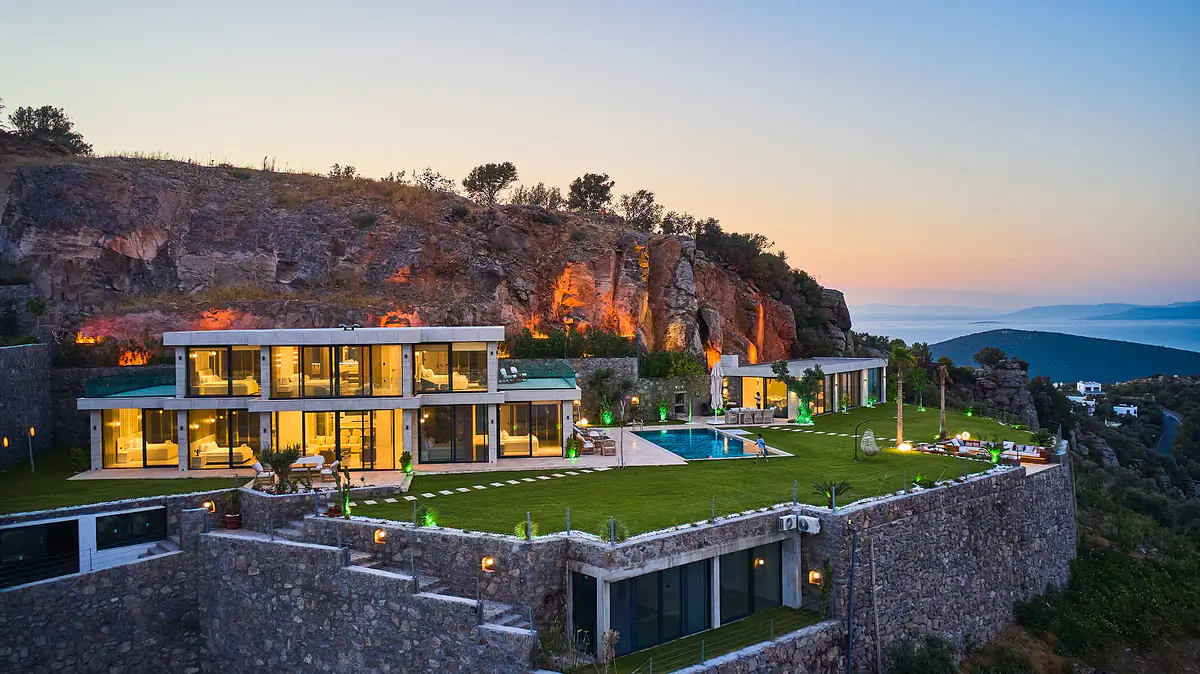 Experience the epitome of luxury living in Bodrum’s exclusive Türkbükü area. Nestled on the Turkish Riviera, these mansions offer breathtaking views of the sea and surrounding hills. Enjoy easy access to amenities like cafes, restaurants, and markets, as well as proximity to key landmarks including Yalikavak Palmarina and the Mausoleum at Halicarnassus. With 12 spacious houses spread over 15,685 m² of land, each mansion boasts 1500 m² of private space. Dive into the refreshing private swimming pool, unwind on the private beach, or take advantage of the shuttle service and boat mooring pier. Additional features include a helipad, smart home system, and round-the-clock security. These homes feature five bedrooms, a modern kitchen, expansive living areas, and panoramic terraces. Don’t miss this opportunity to own a piece of paradise in Türkbükü. Ref: BJV-00383.![]()
