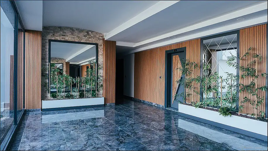 These flats for sale in Antalya are within walking distance of all daily and social amenities. They are also 850 m from the hospital, 1.3 km from the beach, 1.9 km from the shopping center, 8 km from Gazipaşa Airport, and 40 km from Alanya city center.