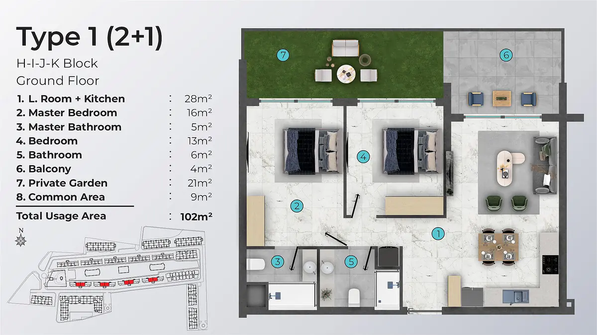 Discover modern apartments in a developed complex in İskele, North Cyprus, offering a serene lifestyle surrounded by golden sandy beaches and various entertainment facilities. Enjoy the crystal-clear seawater and abundant sunshine, with easy access to daily amenities. Located near key landmarks such as MacKenzie Bay and East Mediterranean University, this project features 24/7 security, communal gardens, swimming pools, fitness center, and more. Choose from studio, 1, 2, or 3-bedroom options with open-plan kitchens, private gardens, or terraces. Don’t miss this opportunity to invest in your dream home in İskele, North Cyprus.![]()