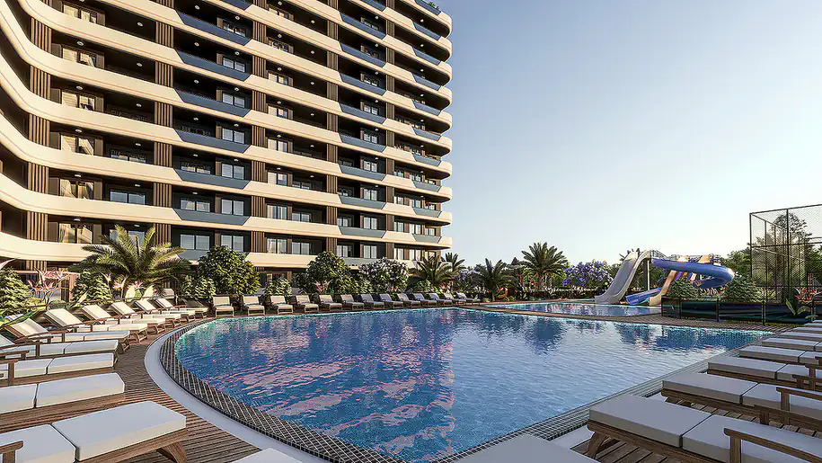 Discover the epitome of luxury living in Arpaçbahşiş, Mersin with these stunning apartments offering breathtaking sea views. Situated in a prime coastal location, these stylish residences boast modern architecture and a wealth of on-site amenities. Mersin’s favorable climate, fertile surroundings, and booming tourism industry make it a prime destination for both living and investing. The Arpaçbahşiş area enchants with its crystal-clear waters, expansive beaches, and natural charms. These exclusive apartments are conveniently located within walking distance to the beach and essential services, providing a perfect blend of relaxation and convenience. Residents can enjoy leisure facilities including an outdoor pool, aquapark, fitness areas, and 24/7 security, ensuring a safe and comfortable living experience. Don’t miss this opportunity to own a piece of paradise by the sea!![]()