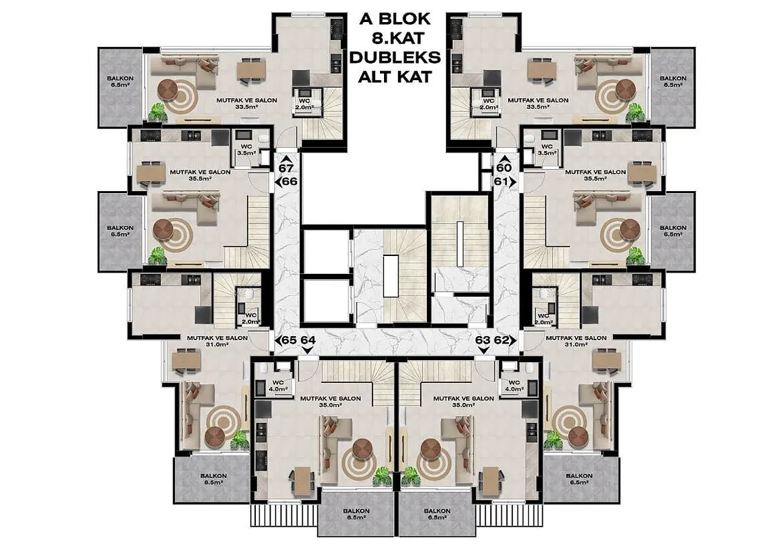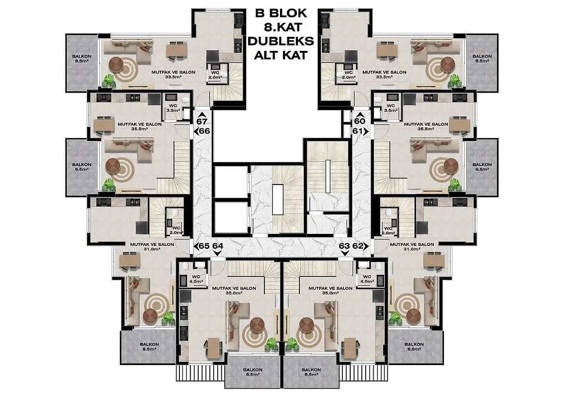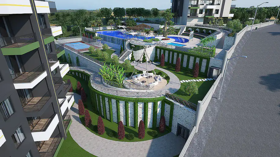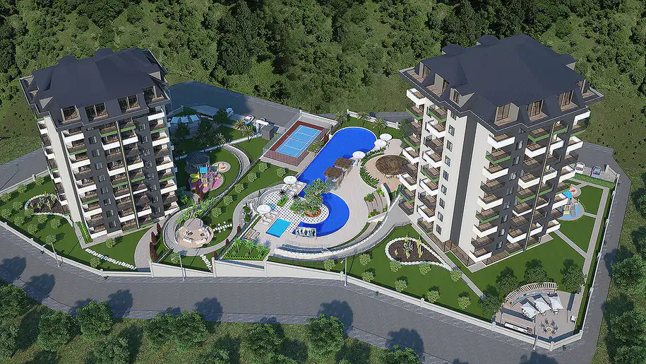 Discover these contemporary and elegant seaview apartments nestled in the serene Demirtaş region of Alanya. Surrounded by lush greenery, this hotel-concept complex offers a peaceful retreat with convenient access to the local bazaar and beautiful beaches. Embrace a lifestyle of comfort and luxury, just 780 m from essential amenities like the market, vet, and pharmacy, and a short 1.55 km stroll to the sparkling sea. With top-notch facilities including indoor and outdoor pools, a playground, BBQ area, and more, this complex provides the perfect blend of relaxation and recreation. Don’t miss this opportunity to own a slice of paradise in Alanya, Turkey! Enquire now for more details.![]()